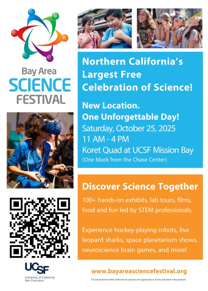 The Bay Area Science Festival encourages you to get vaccinated, wear a mask and practice social distancing. Be sure to check back for updated and more detailed COVID safety information prior to attending.